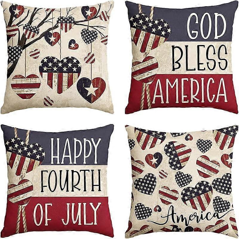 God Bless America Stars Tree Throw Pillow Covers, 18x18 Inch, Patriotic USA Flag Cushion Cases for 4th of July, Memorial Day, Set of 4