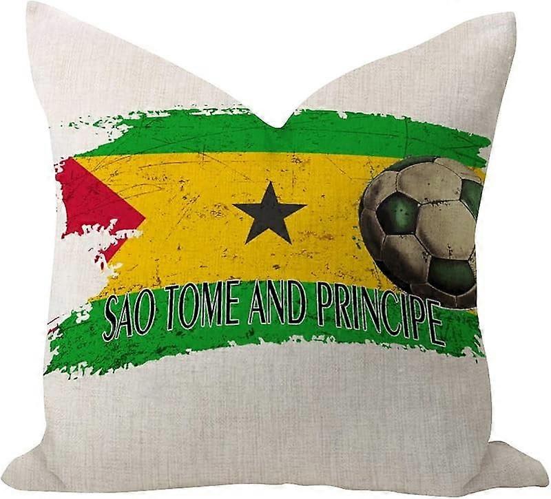 Football Theme Sao Tome And Principe Soft Outdoor Pillow Covers, Compatible with America Country European Flags, Linen Cushion Case for Home Decor