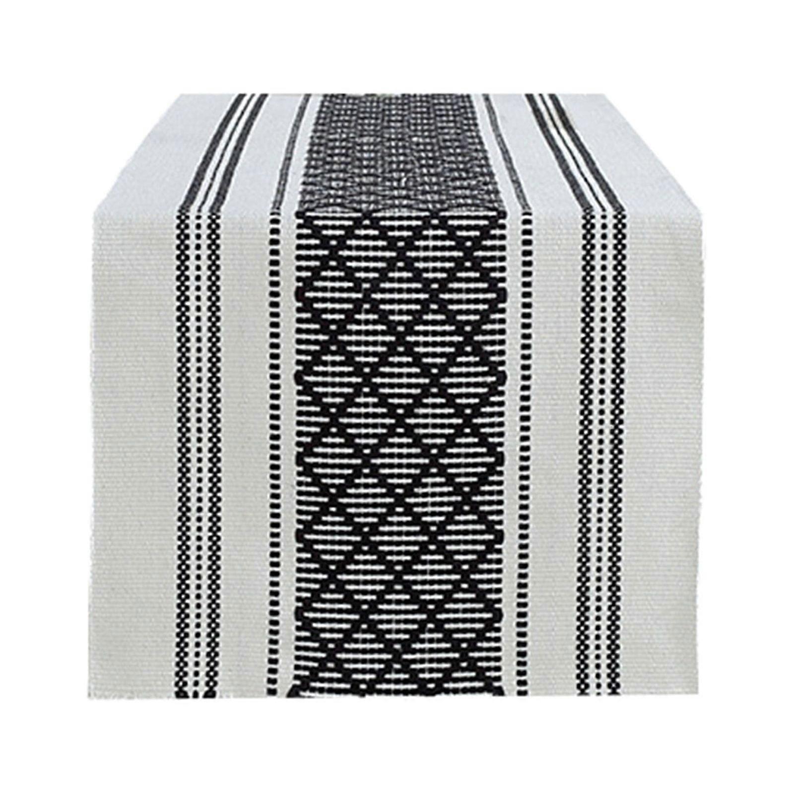 XIUH Home Textile Table Runner with Fringe, Black Woven Washable Console Tabletop Runner, Farmhouse Extra Long Heavy Cotton Topper (BKB)