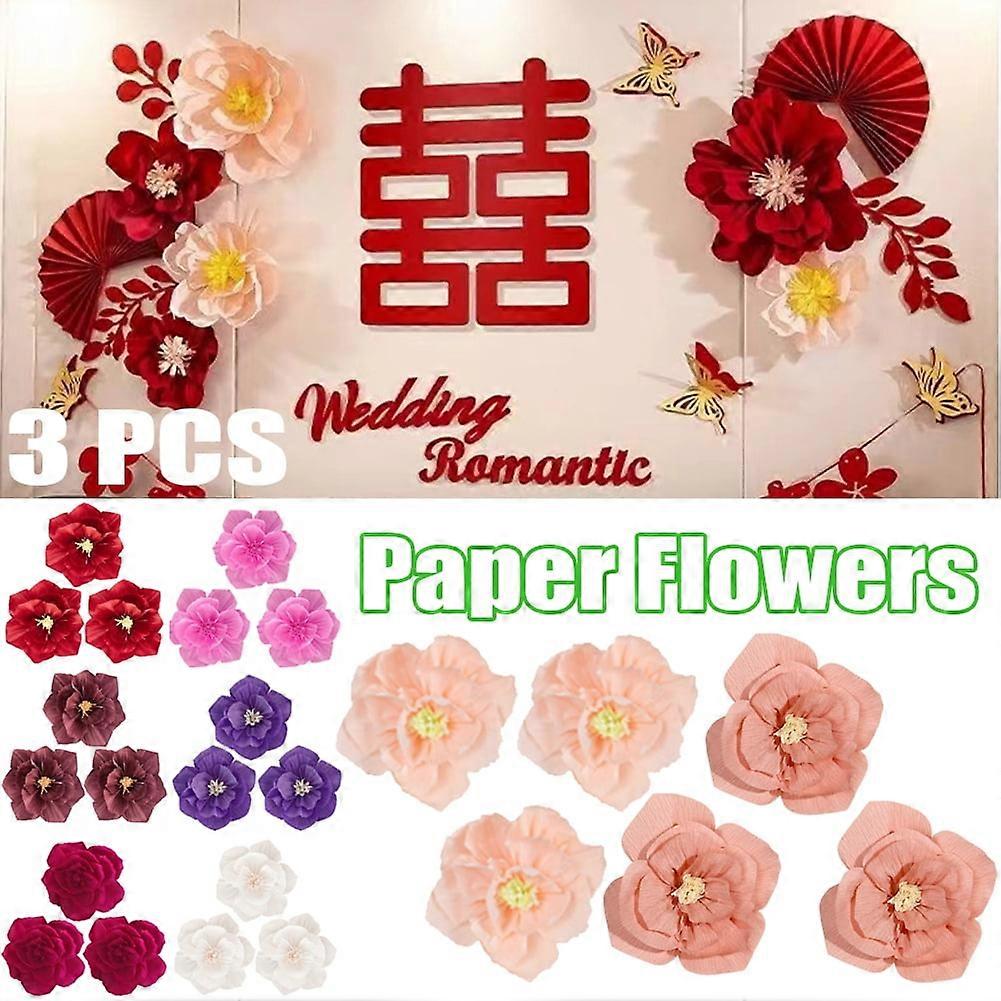 3 PCS Large Crepe Paper Flowers for Wedding Backdrop, Archway & Birthday Party Decor, Compatible with Leaveforme Craft Supplies