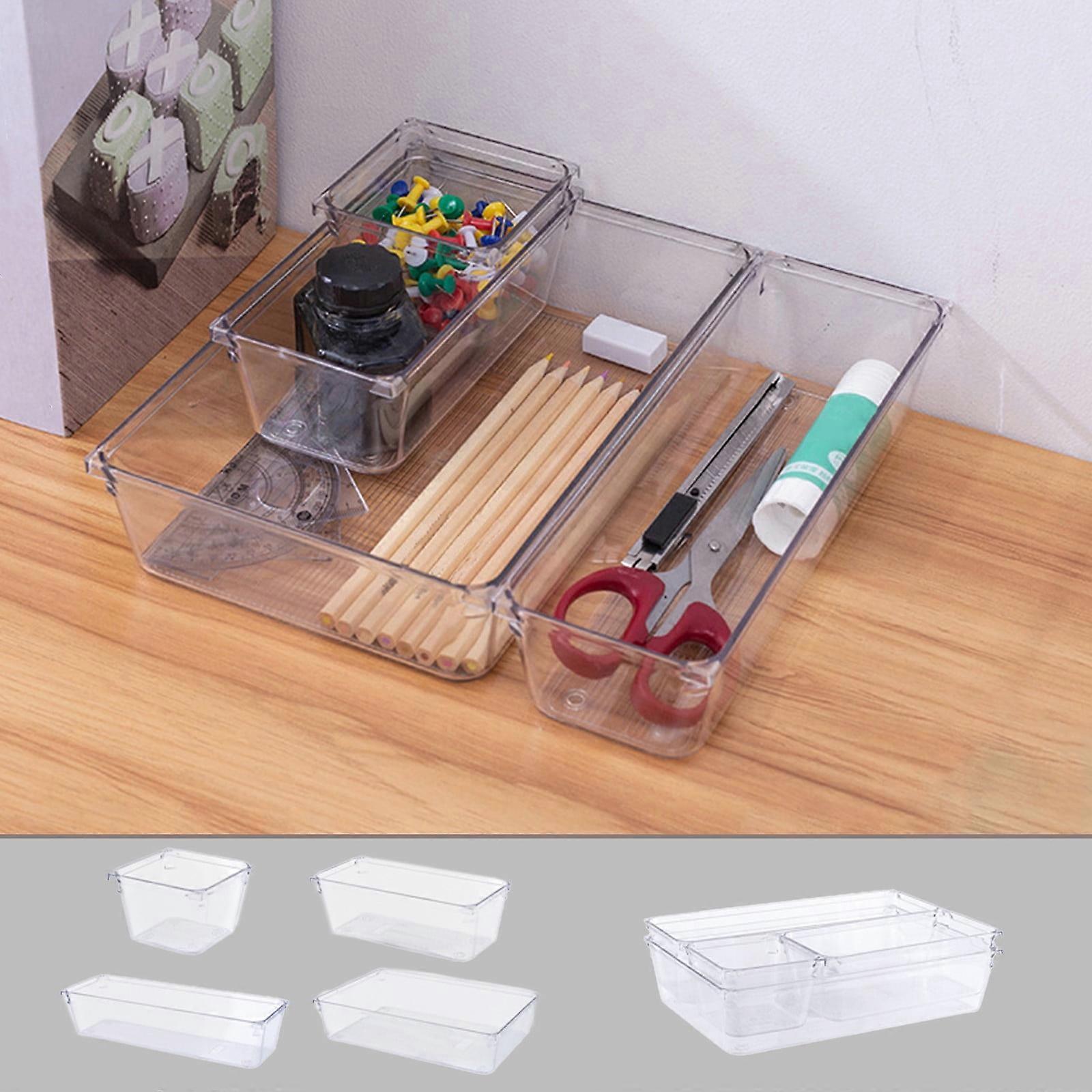 Donemore 4 Pcs Clear Plastic Drawer Organizers, Multi-Size Bathroom & Vanity Box for Makeup, Bedroom, Kitchen, Office