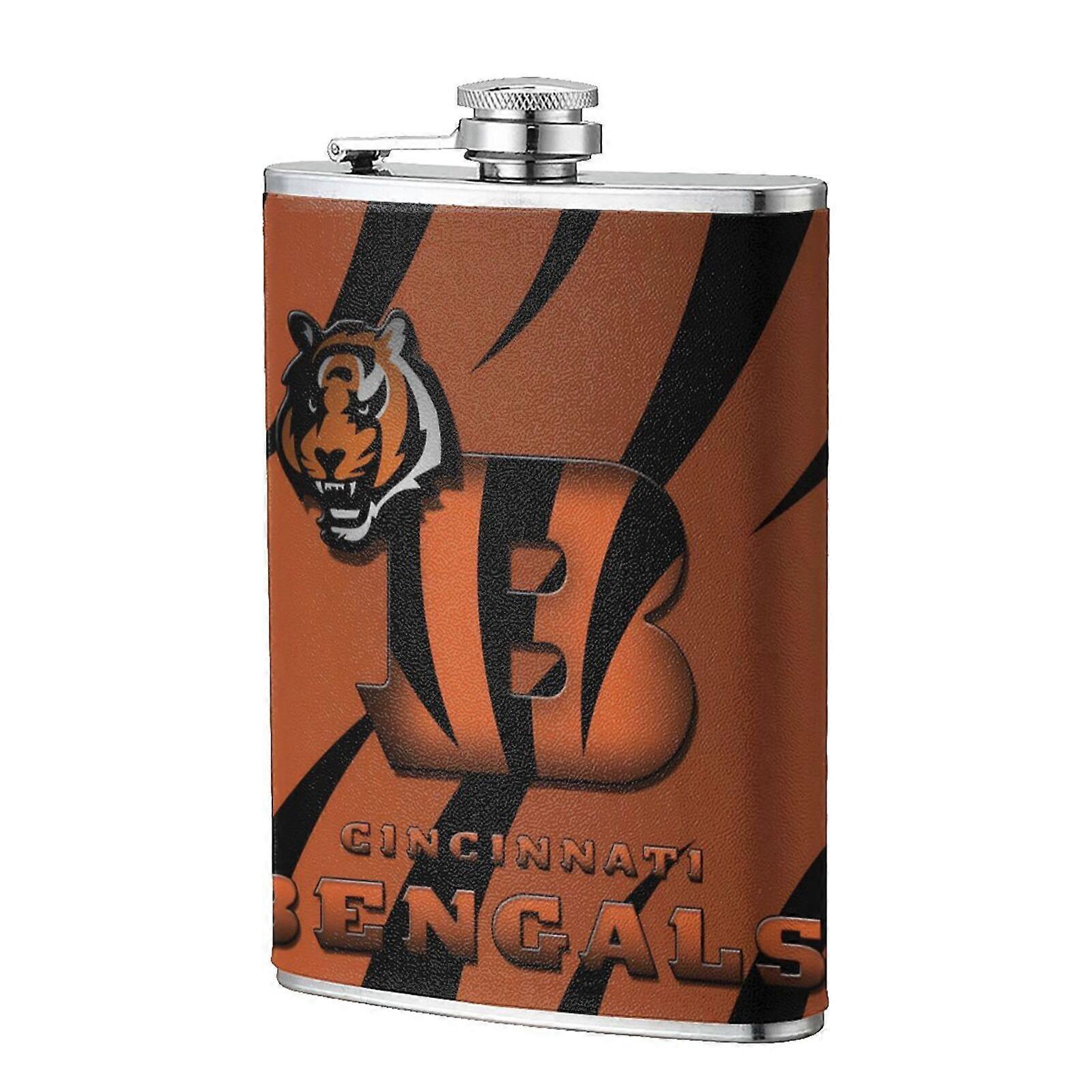 Bengals Flagon Hip Flask 8oz, Food-Grade Stainless Steel & Leather, Portable for Men, Compatible with Outdoor Sports, Camping