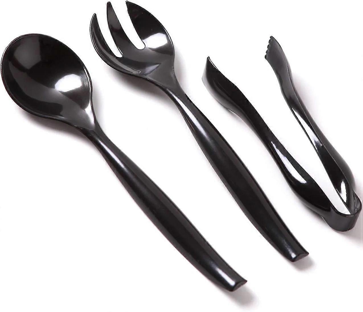 Nicole Fantini's Plastic Serving Utensils, Black Heavy Duty Disposable utensil | Set 10" Spoons 10" Forks 6" Tongs | 2 Each in One Set| 48 Pcs
