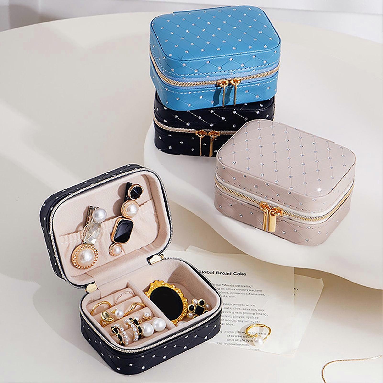 SUSUchens Jewelry Organizer Box, Grey Star Rhinestone Faux Leather Portable Zippered Case for Earrings & Necklaces