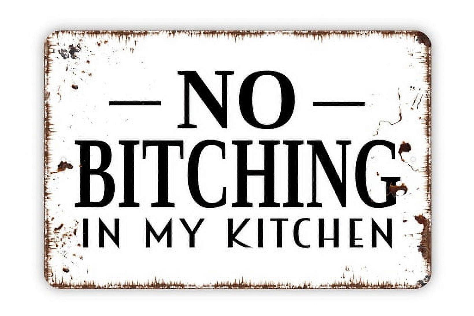 No Bitching In My Kitchen Metal Sign Funny Kitchen Farmhouse Wall Decor Modern Wall Metal Sign Size: 8 x 12 Inch