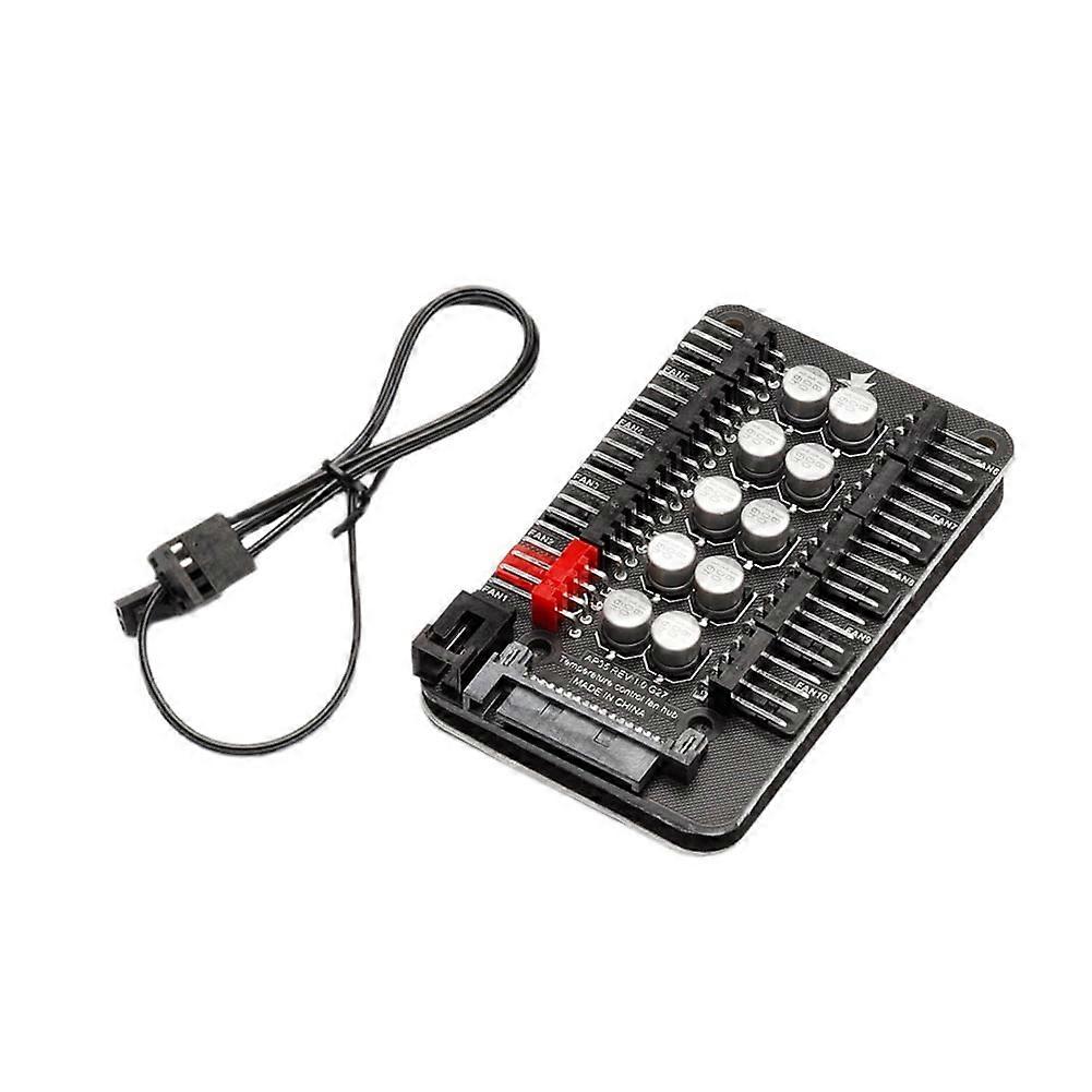 Motherboard 4 Pin PWM Hub Cooler Fan Splitter Extension Cable SATA Power Supply PC Cooling Speed Controller Adapter _x005f_x000D_ Specification: _x005f_x000D_ Product model: L&Y PWM HUB _x005f_x000D_ Size: 75x46x12.3mm _x005f_x000D_ Number of fan ports: 10 ports _x005f_x000D_ Fan interface: 4pin (PWM) _x005f_x000D_ Power interface: SATA power interface _x005f_x000D_ Other accessories: motherboard connection line about 40CM _x005f_x000D_ _x005f_x000D_ Tips: _x005f_x000D_ The red interface must be connected with a fan to detect the speed. The single interface should not be connected with a fan more than 1A. _x005f_x000D_ The temperature control hub is not a controller, and the control speed needs to be adjusted in the motherboard BIOS. It does not support high-power fans (more than 1A current), you can connect a three-pin fan, but you can't adjust the speed when you connect it, and it will run at full speed. (If your motherboard supports DC speed control, it can be adjusted, for example, MSI motherboards support it. DC speed regulation). _x005f_x000D_ _x005f_x000D_ Note: _x005f_x000D_ Due to the different monitor and light effect, the actual color of the item might be slightly different from the color showed on the pictures. Thank you! _x005f_x000D_ Please allow 1-2cm measuring deviation due to manual measurement. _x005f_x000D_ _x005f_x000D_ Included: _x005f_x000D_ 1 X Motherboard 4 Pin PWM Hub _x005f_x000D_ 1 X Extension Cable _x005f_x000D_