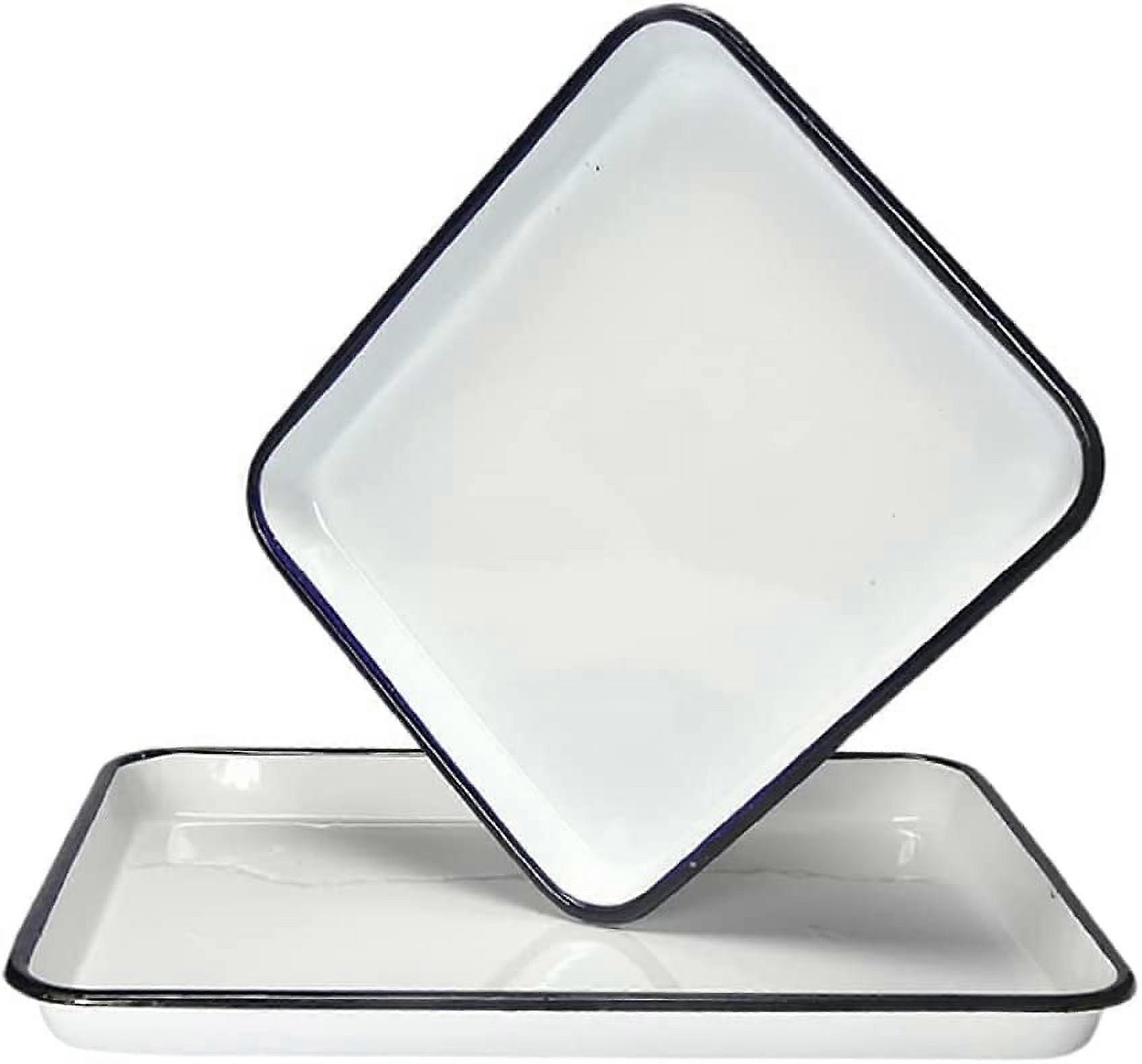 1PCS Handcrafted Vintage Tray White Enamel Home Cake Oven Baking Tray Square Retro Plates (25CMX30CMX3.5CM)