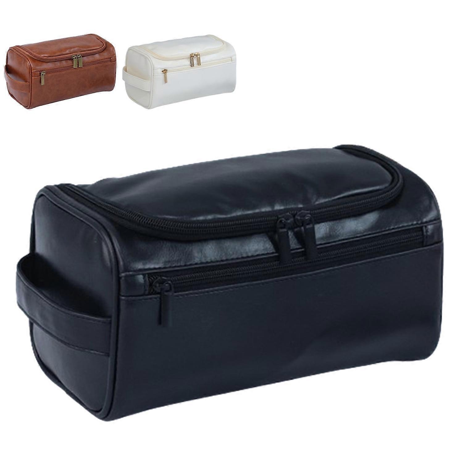Wash Shaving Bag For Men's PU Leather Toiletry Bag Travel Hanging Toiletry Bag for Women Men,Black
