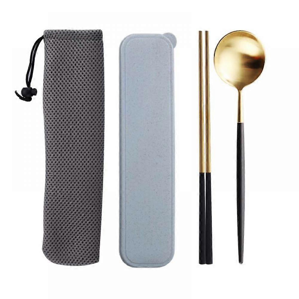 4pcs Set sStainless Steel Cutlery Western Food Coffee Spoon Chopsticks Gift Set Portuguese Tableware (spoon chopsticks+carrying box+cloth bag buckle)