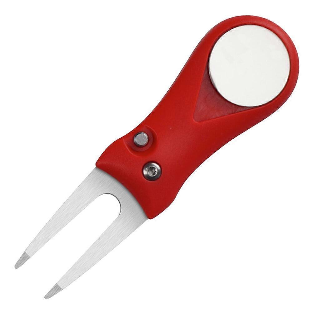 Mizh Stainless Steel Grass Repair Tool Divot Tool Fork ABS Plastic Handle Folding Greens Fork Training Tools (Red)