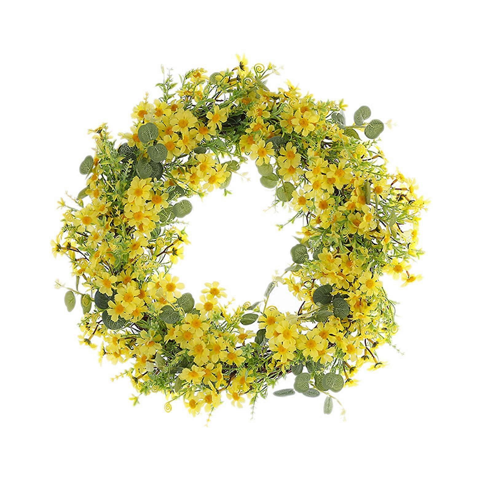 Artificial Wreath Yellow Flowers Eucalyptus DIY Spring Wall Door Hanging Faux Winter Jasmine Garland Home Supplies-40cm,Yellow