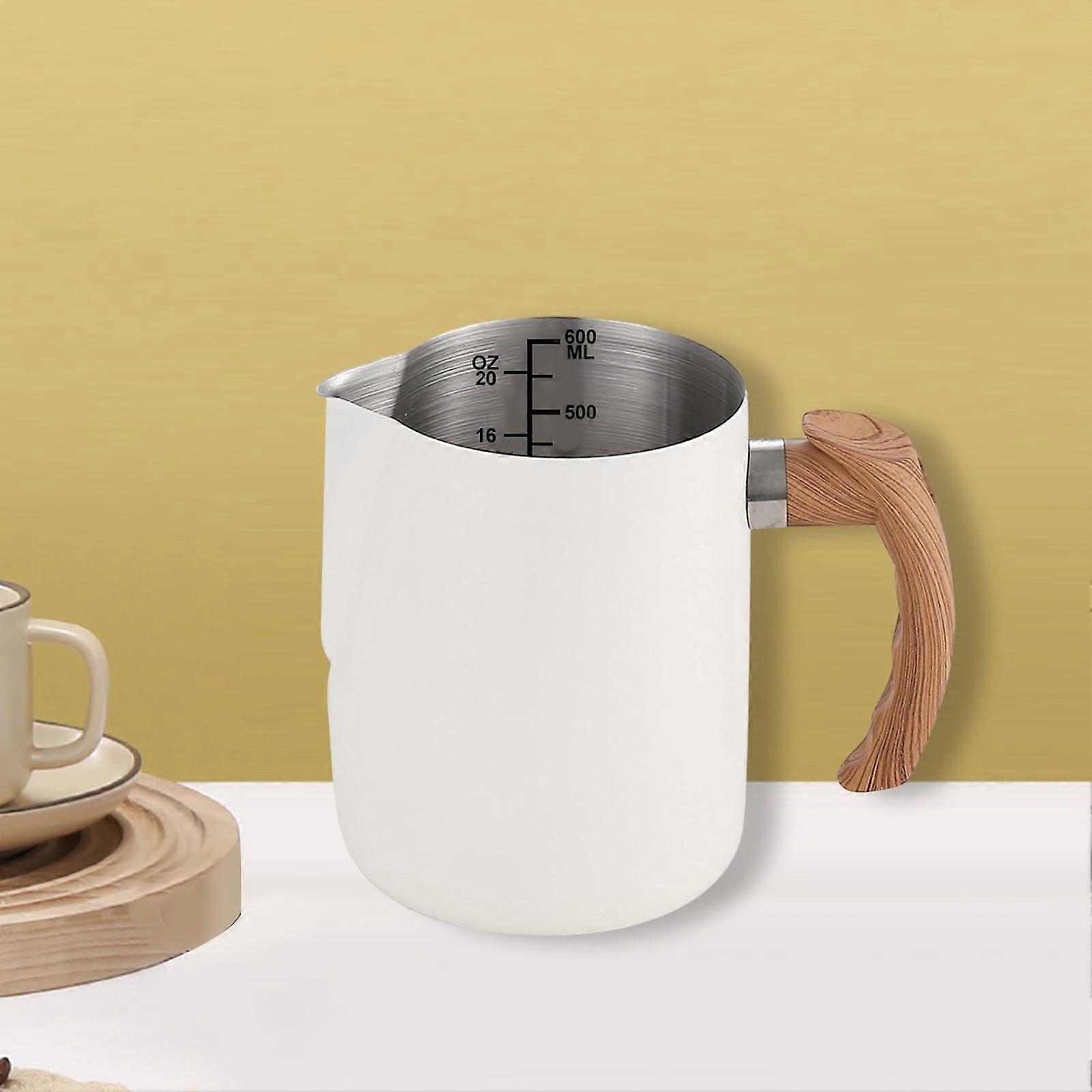Hariumiu Comfortable Milk Frothing Pitcher 600/1000ml Stainless Steel with Precise Scale, Wooden Handle, Dripless Spout