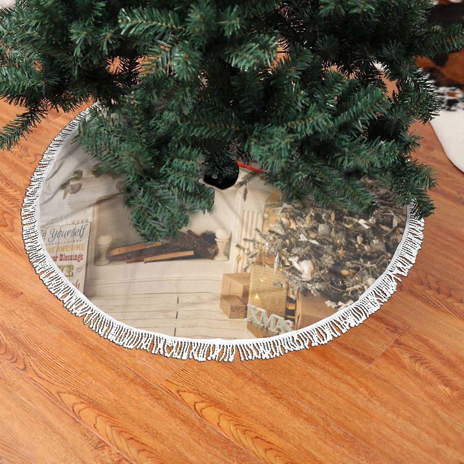 Christmas Fringed Lace Tree Skirt 48" - Soft, Light & Beautiful Holiday Decor Compatible with Christmas Tree & Presents