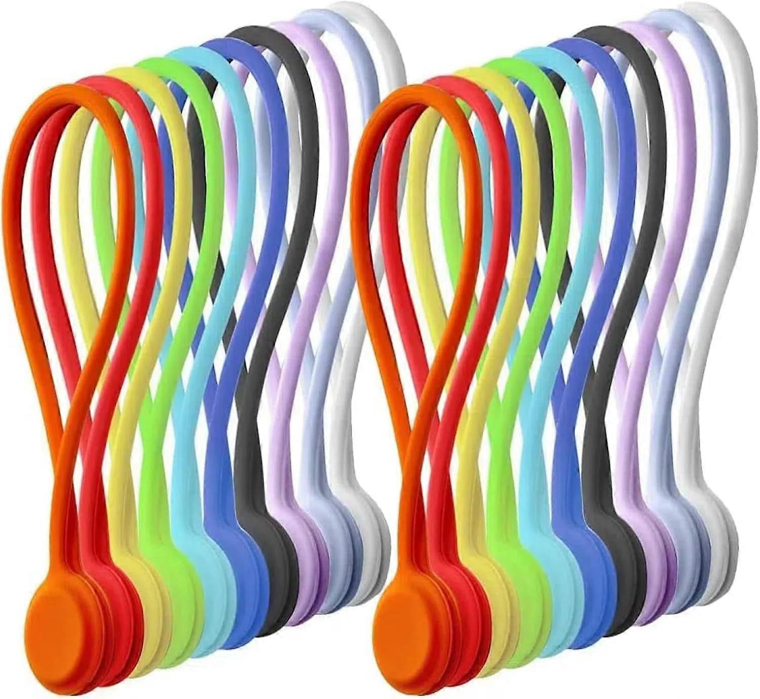 20 Pack Reusable Silicone Magnetic Cable Ties, compatible with Smart Home Devices - 10 Colors, for Home/Office Wire Wrapping & Organizer