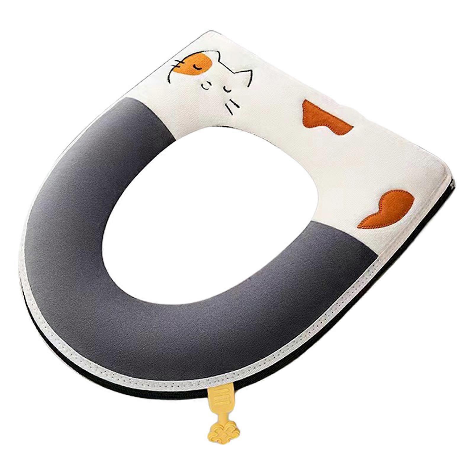 Winter Warm Cartoon Toilet Seat Cover: Washable, with Handle, Bathroom Accessory