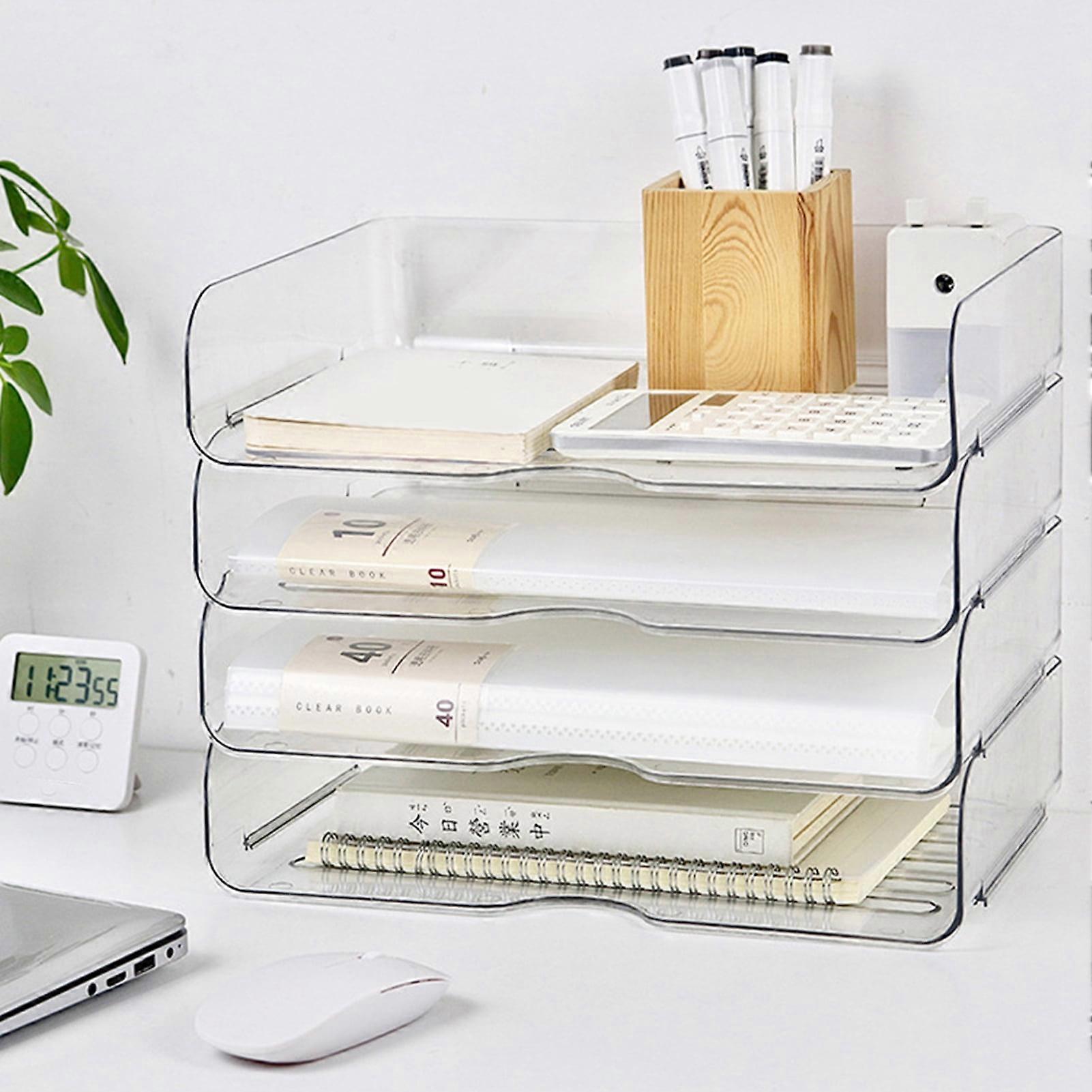 SUSUchens 2 Pcs Stackable Storage Box, Clear Desk Organizer Tray, Compatible with Letter & Paper, File & Stationery Holder for Home School Office