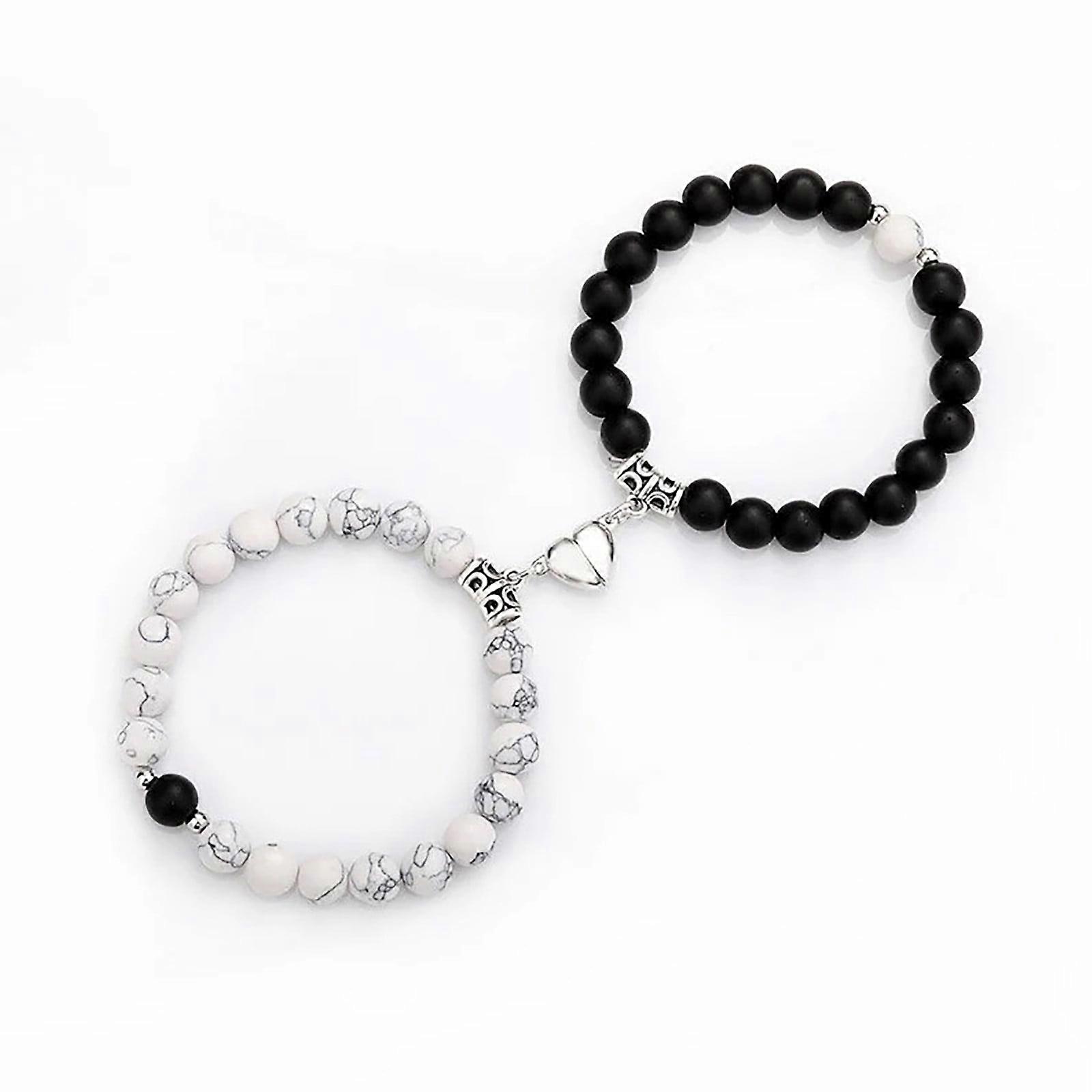 Hwuxmo Frosted White Turquoise Couple Bracelet Heart Shaped Magnet Absorbing Natural Stone Men's And Women's Bracelets Clearance B