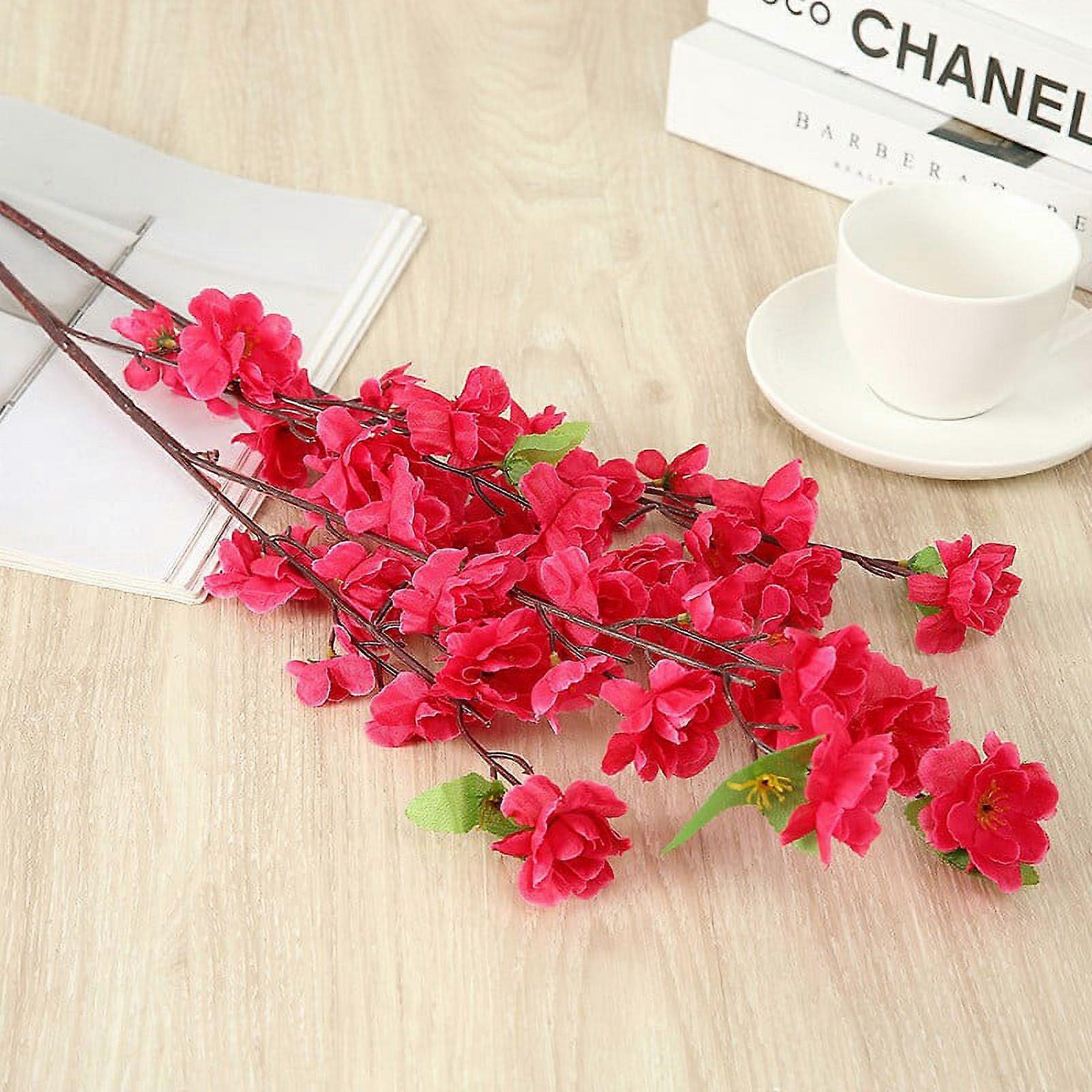 Zriyin Artificial Cherry Plum Peach Blossom Branch Fake Silk Flower Tree Home Dec,rose red