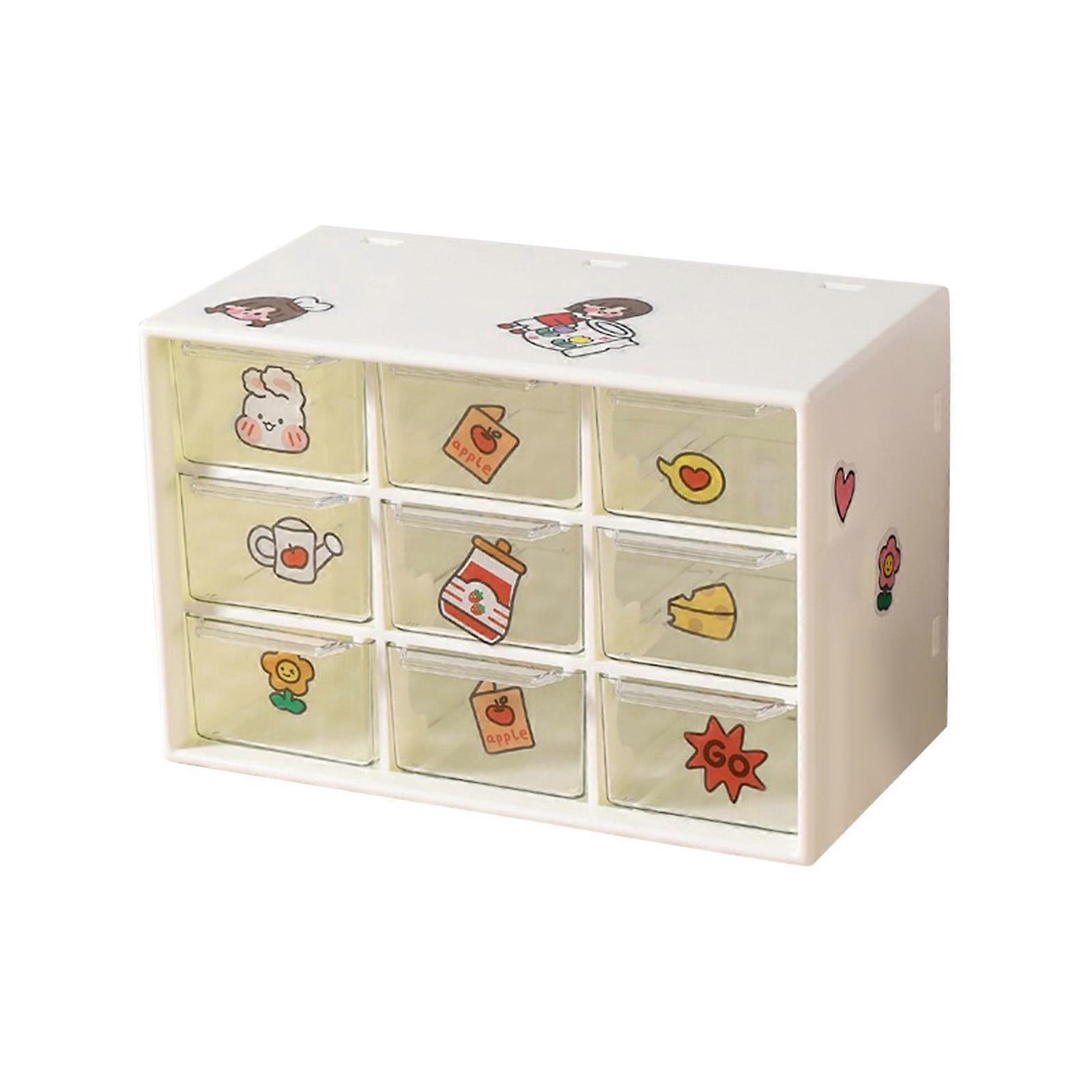 WJSXC Nine Proof Drawer Storage Box Stationery Jewelry Cosmetics Storage Student Drawers and Stickers White