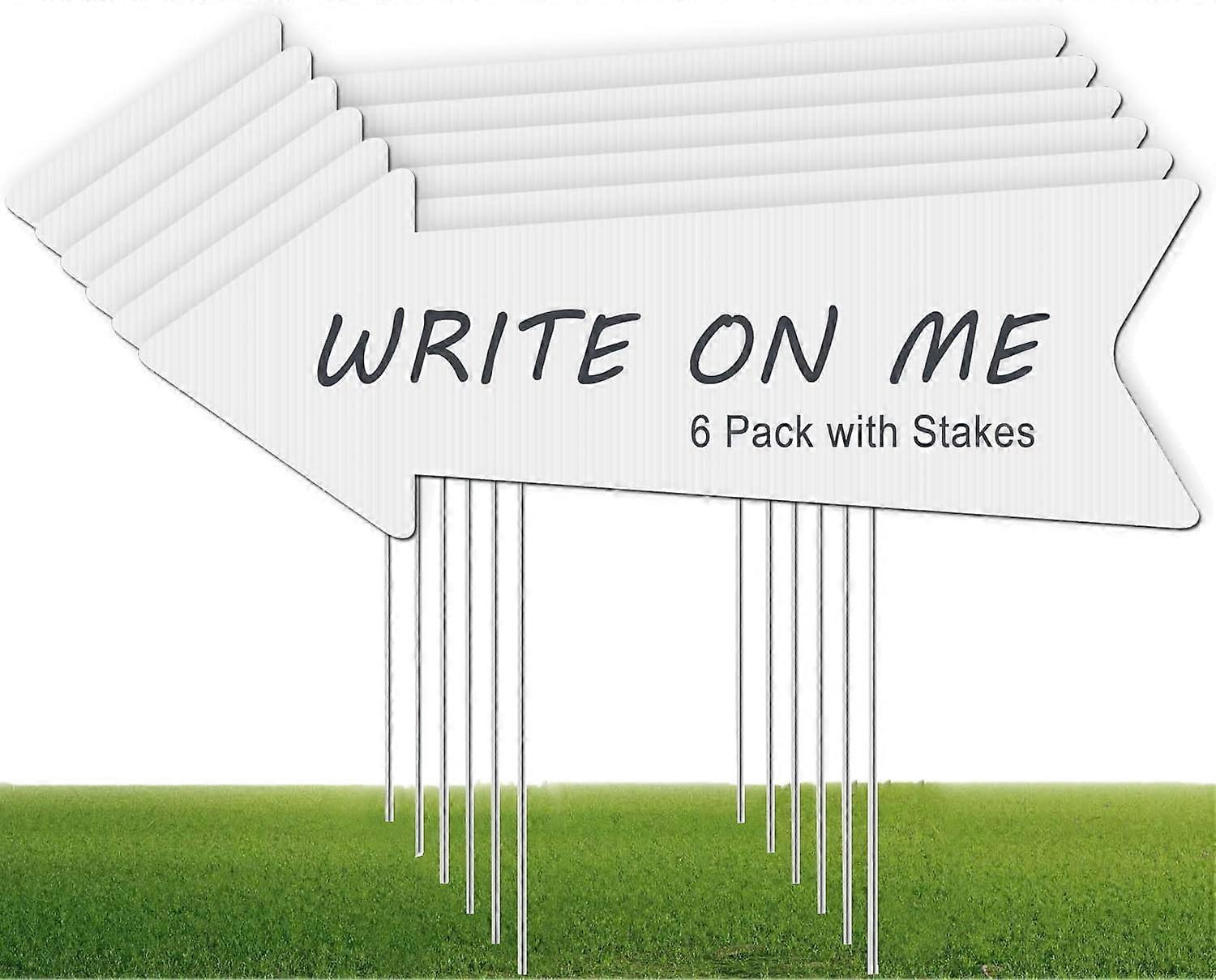 NOGIS 6 Pack Blank Arrow Signs with Stakes 17 x 6 inches Wedding Directional Yard Signs with Stakes, This Way Arrow Yard Signs Birthday Party Signs