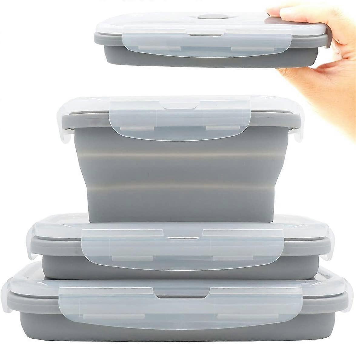 Collapsible Silicone Lunch Bento Box, 3 Pcs Set, Portable & Space-Saving, Microwave, Dishwasher, Freezer Safe, Compatible with Outdoor Picnic (Grey)