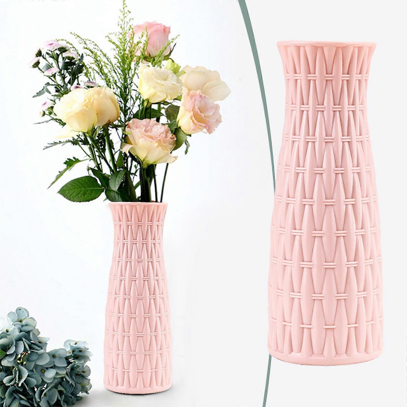 Pink decorative vase, imitation rattan woven plastic flowerpot with artificial flowers, compatible with porcelain & glaze styles