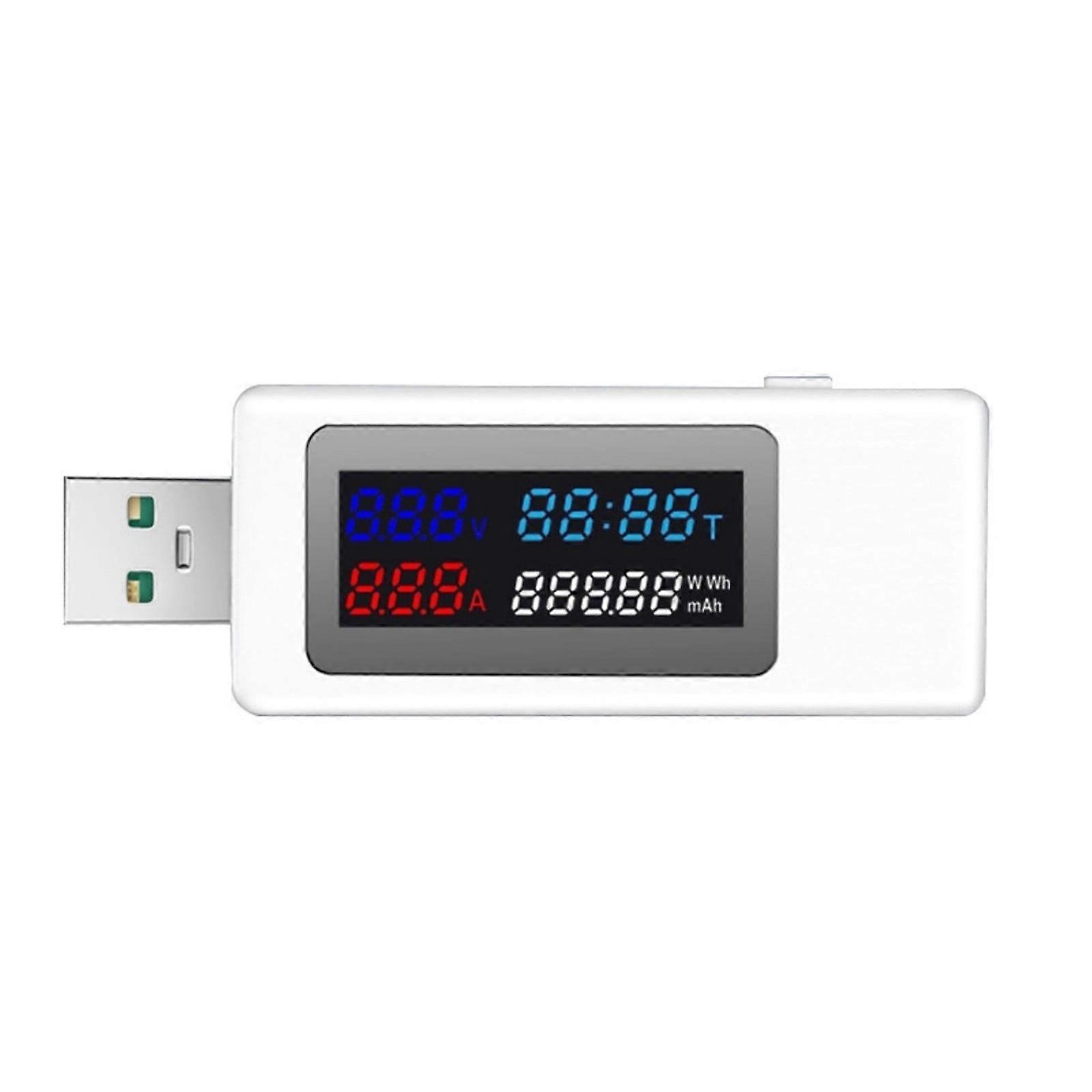 WJSXC Power Meter Tester 6 In 1 Current Voltage Timing Power Capacity Power Tester with Power-off Memory Function White