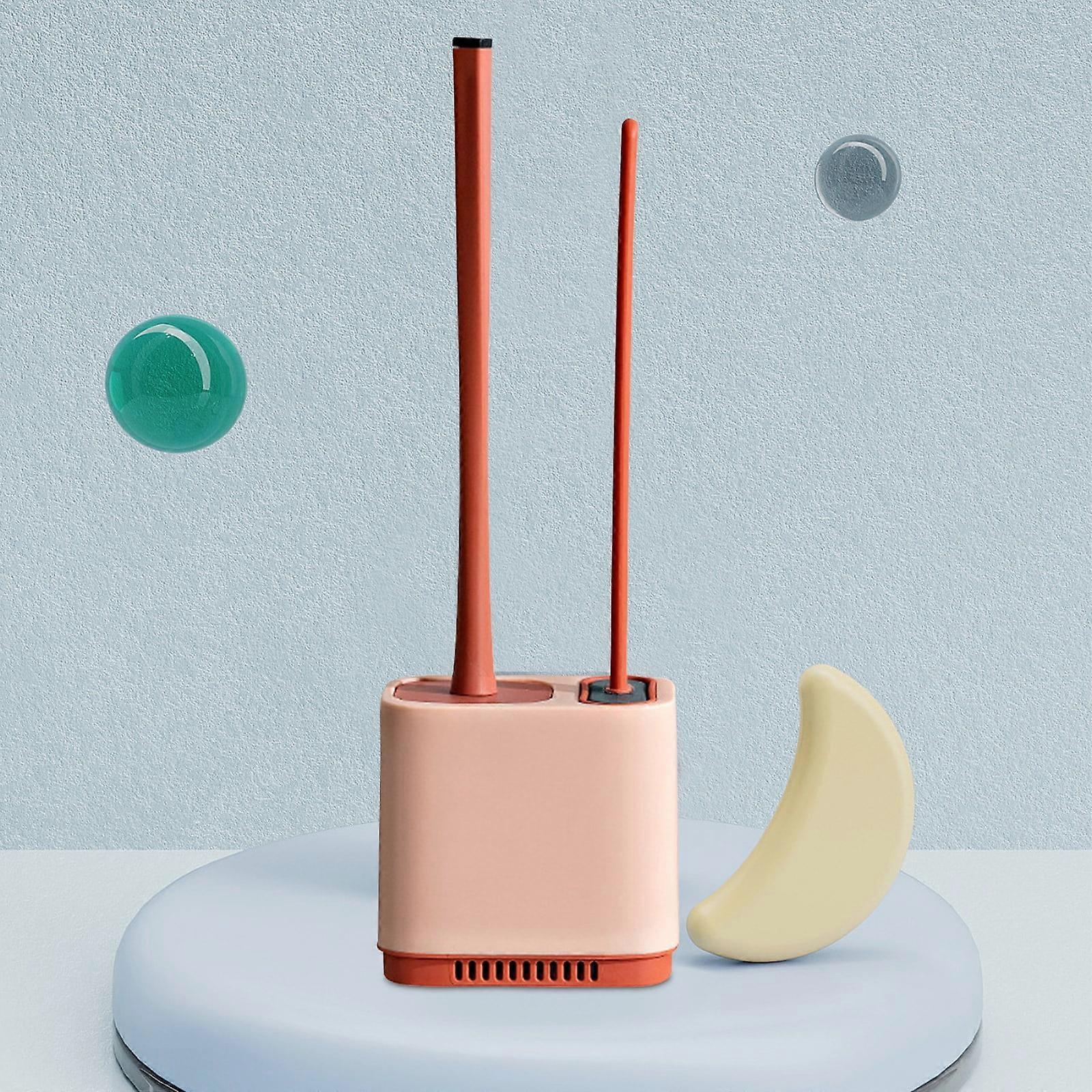 Jacenvly Toilet Bowl Brush & Holder with 2 Brushes (Flat + Rubber), Compatible with Standard Toilets – Bathroom Decor