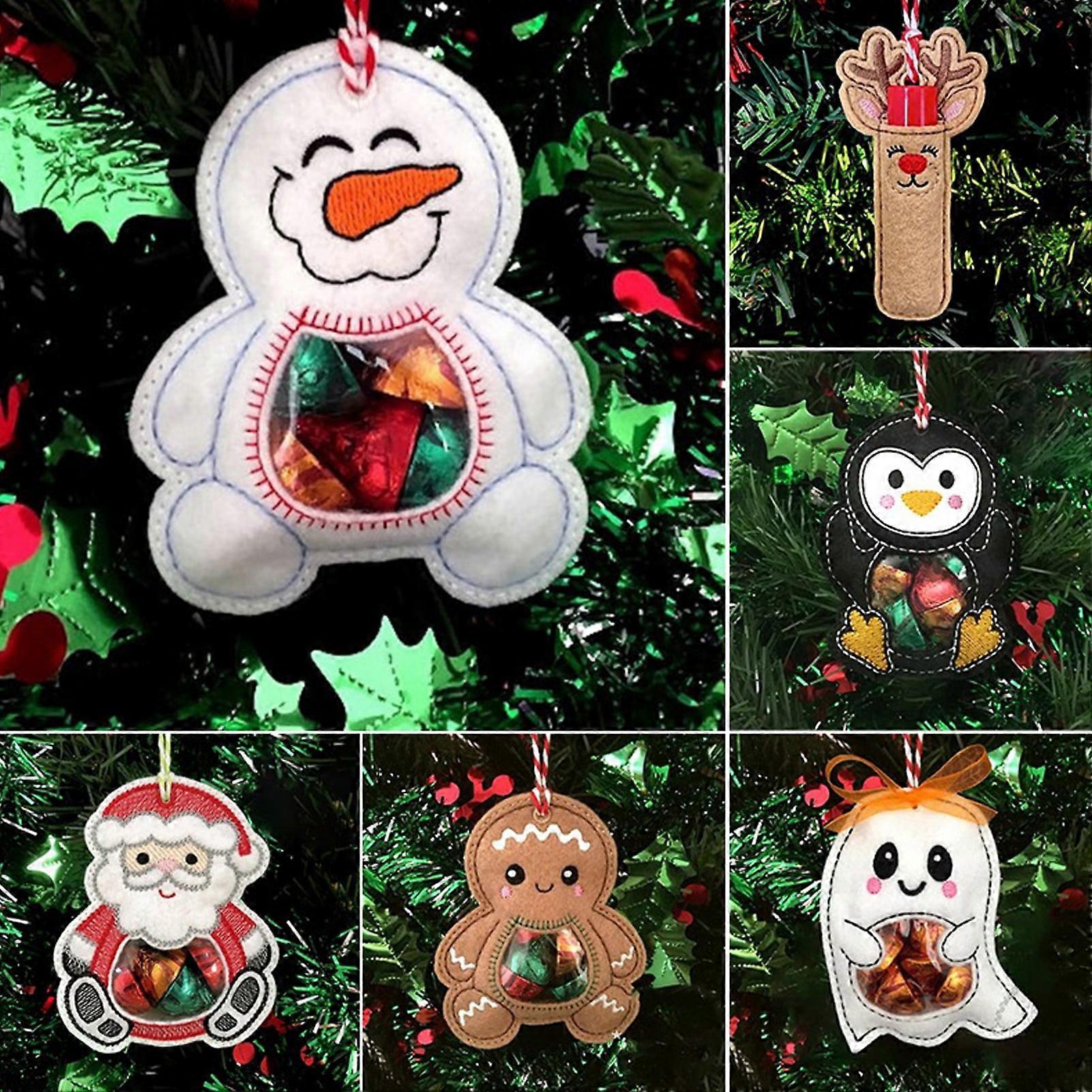 SUSUchens Christmas Candy Bag with Ribbon Lanyard, Compatible with Santa, Snowman, Elk Pendant, Reusable Felt Treat Bag for Tree Ornament & Party