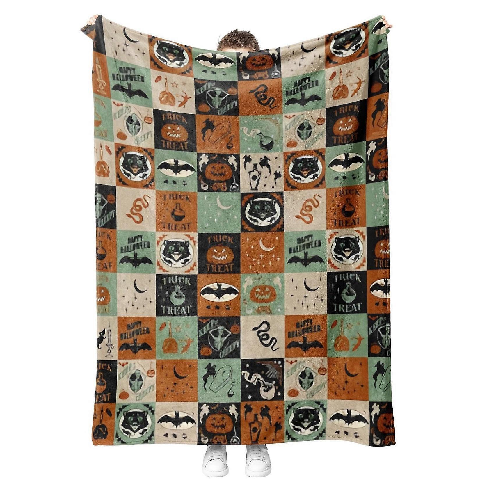 Halloween Throw Blanket Spider Webs Bat Pumpkin Blanket Cozy Flannel White Halloween Decoration for Party Sofa Bed Living Room 60*80 Color 7