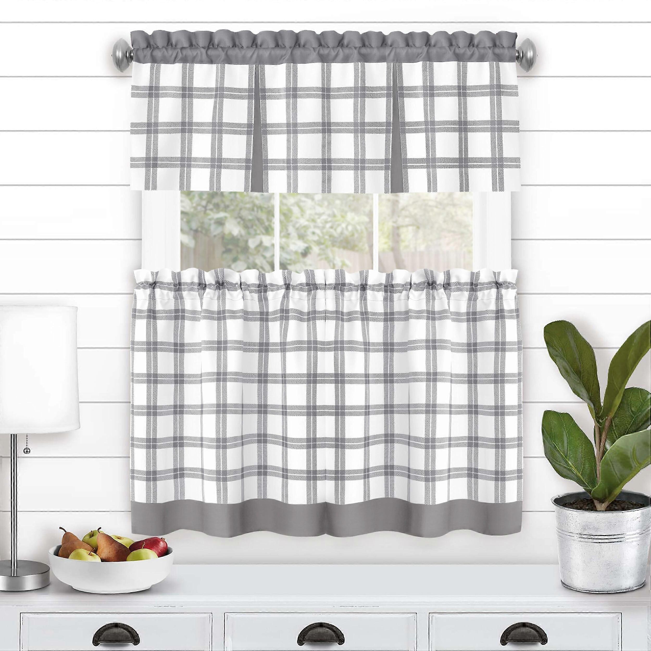 Achim Tate Plaid Light Filtering Tier and Valance Curtain Set, Grey, 58" x 36"