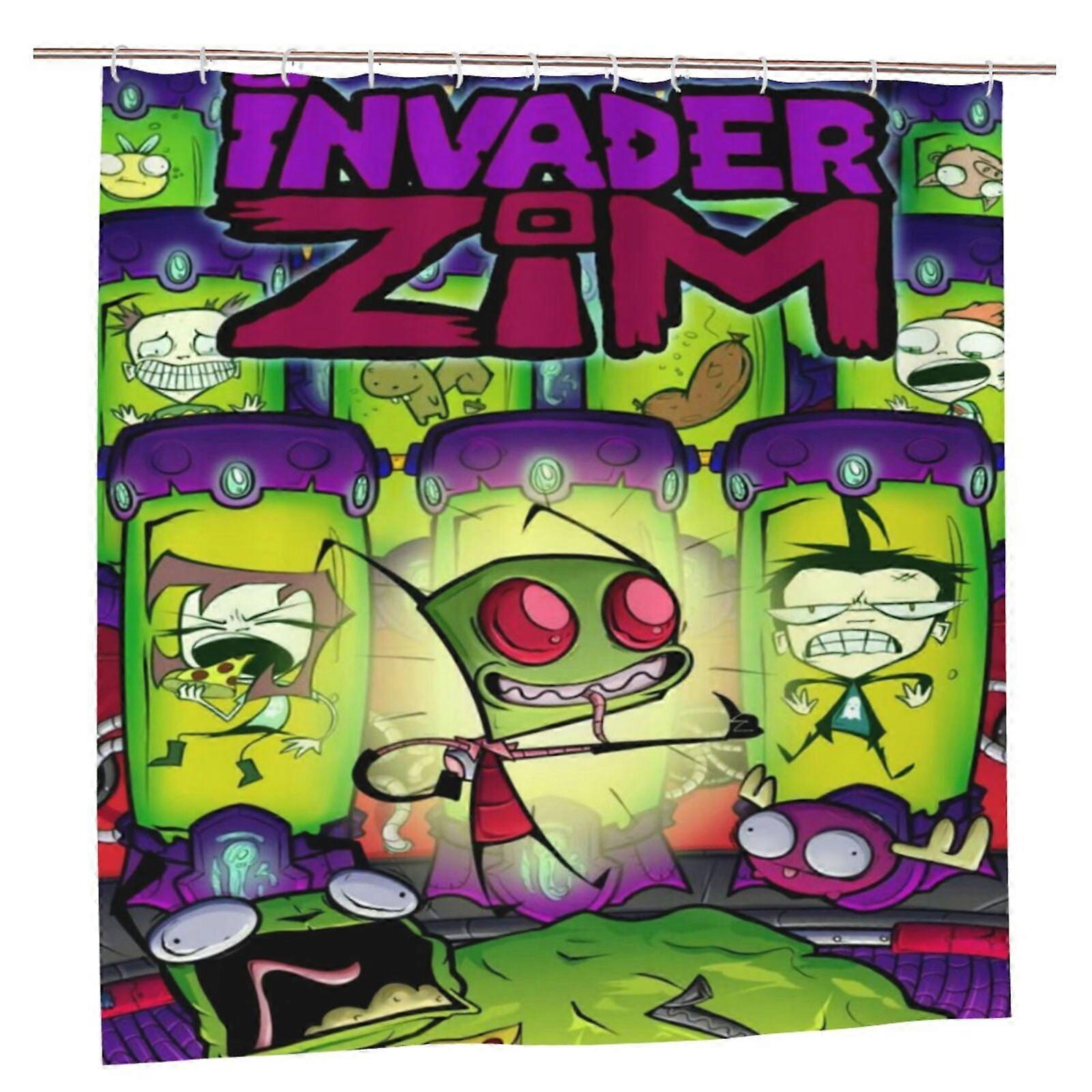 Invader Zim Cartoon Shower Curtain 72" X 72" Anime Bathroom Decor With 12 Hooks Waterproof Washable Polyester Fabric For Bathroom Shower