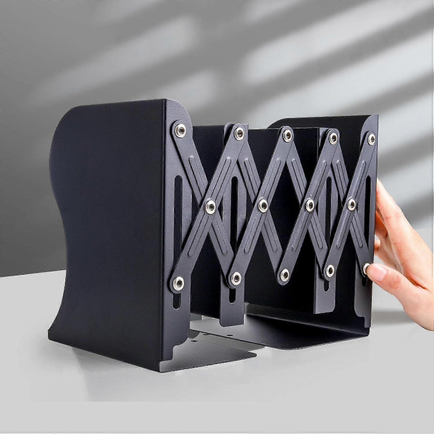 Bookend, Telescopic Book Stand, Student Bookcase, Iron Tabletop Bookshelf, Macaron Color, Anaji Black-medium