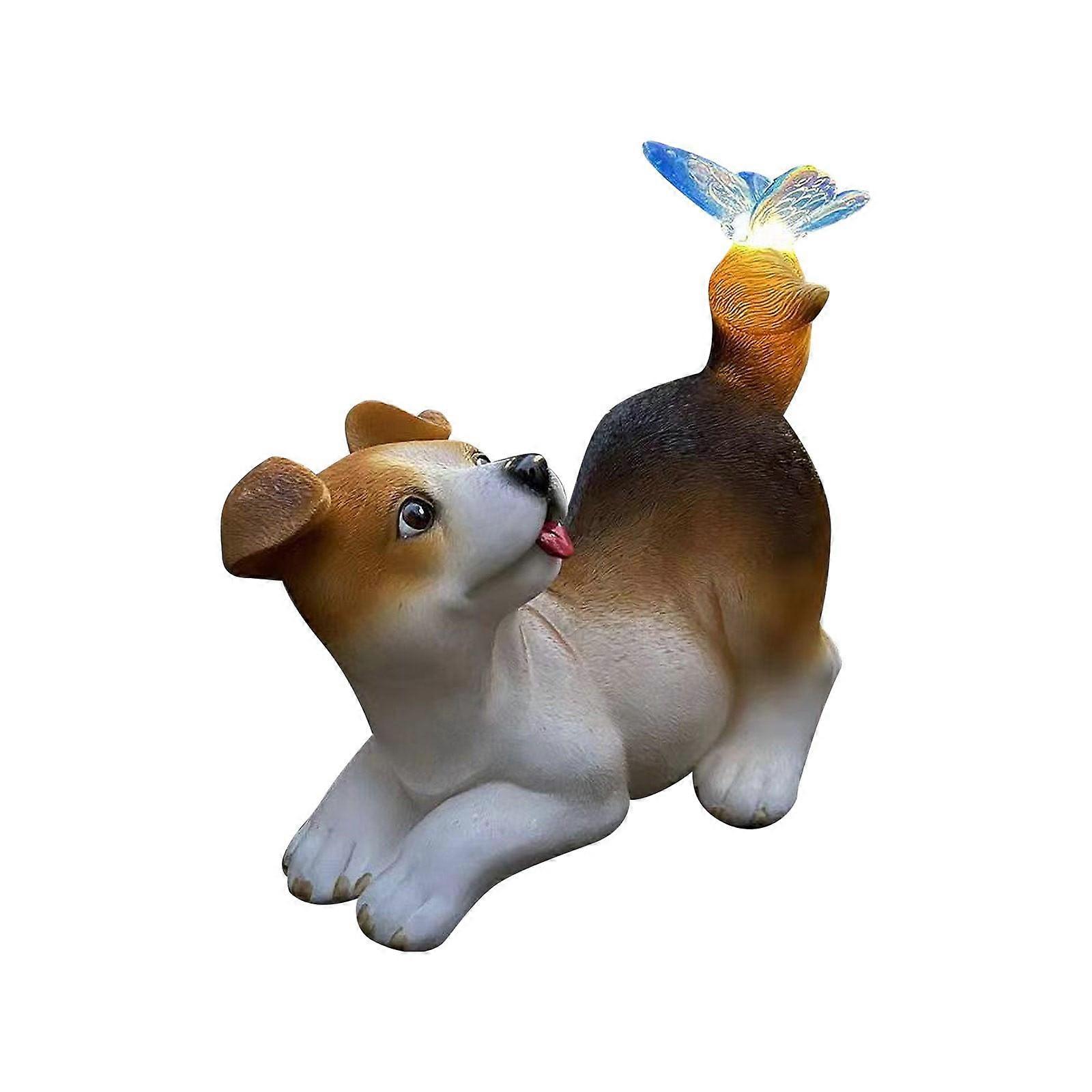 Harpi Garden Statue Dog Figurine with Solar LED Lights, Butterfly Puppy Outdoor Decor for Patio, Yard, Balcony, Housewarming Gift