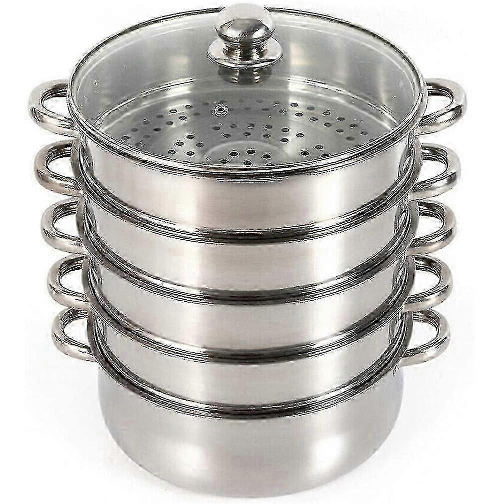 <br>Material: Stainless Steel Color: Silver Size: 28*35cm (five layers) Material: Stainless Steel Package includes: 1 * Pressure Cooker Set Multi-layer steamer made of stainless steel with metal handle, not suitable for induction cookers Stainless steel,<br>