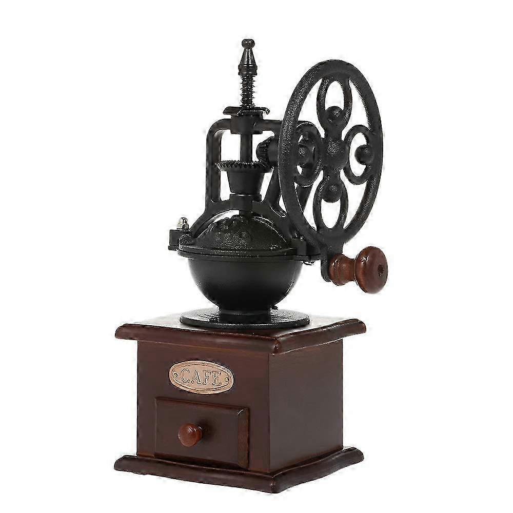 25-26 Antique Cast Iron Coffee Grinder with Grind Settings & Catch Drawer, Manual Hand Crank, 11.5 x 11.5 x 26 cm