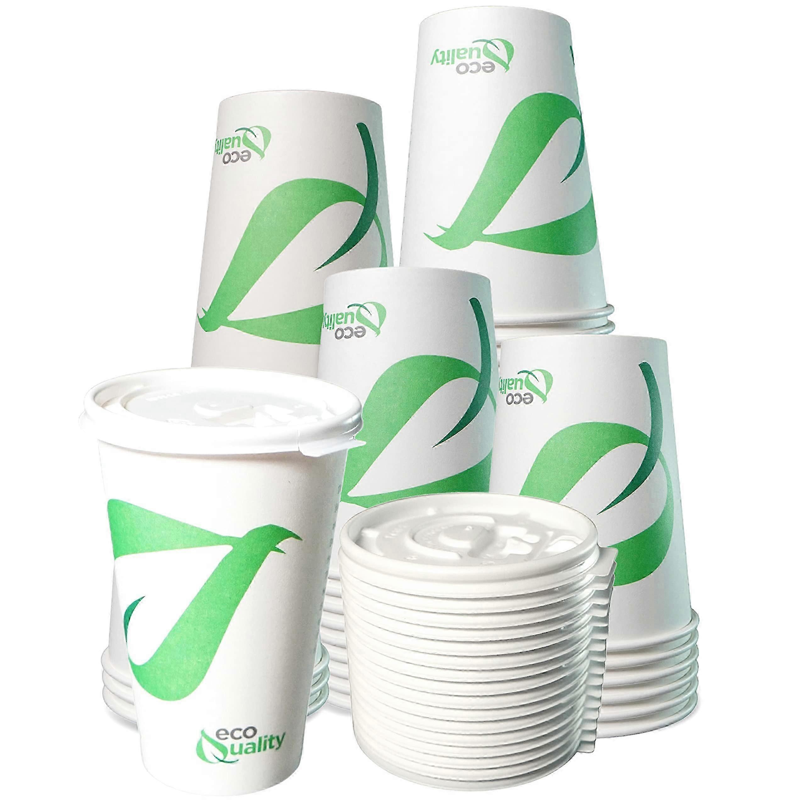 25-26 16 oz Compostable Paper Cups with Lids Biodegradable PLA Lined Eco-friendly Hot Cold Cups 200