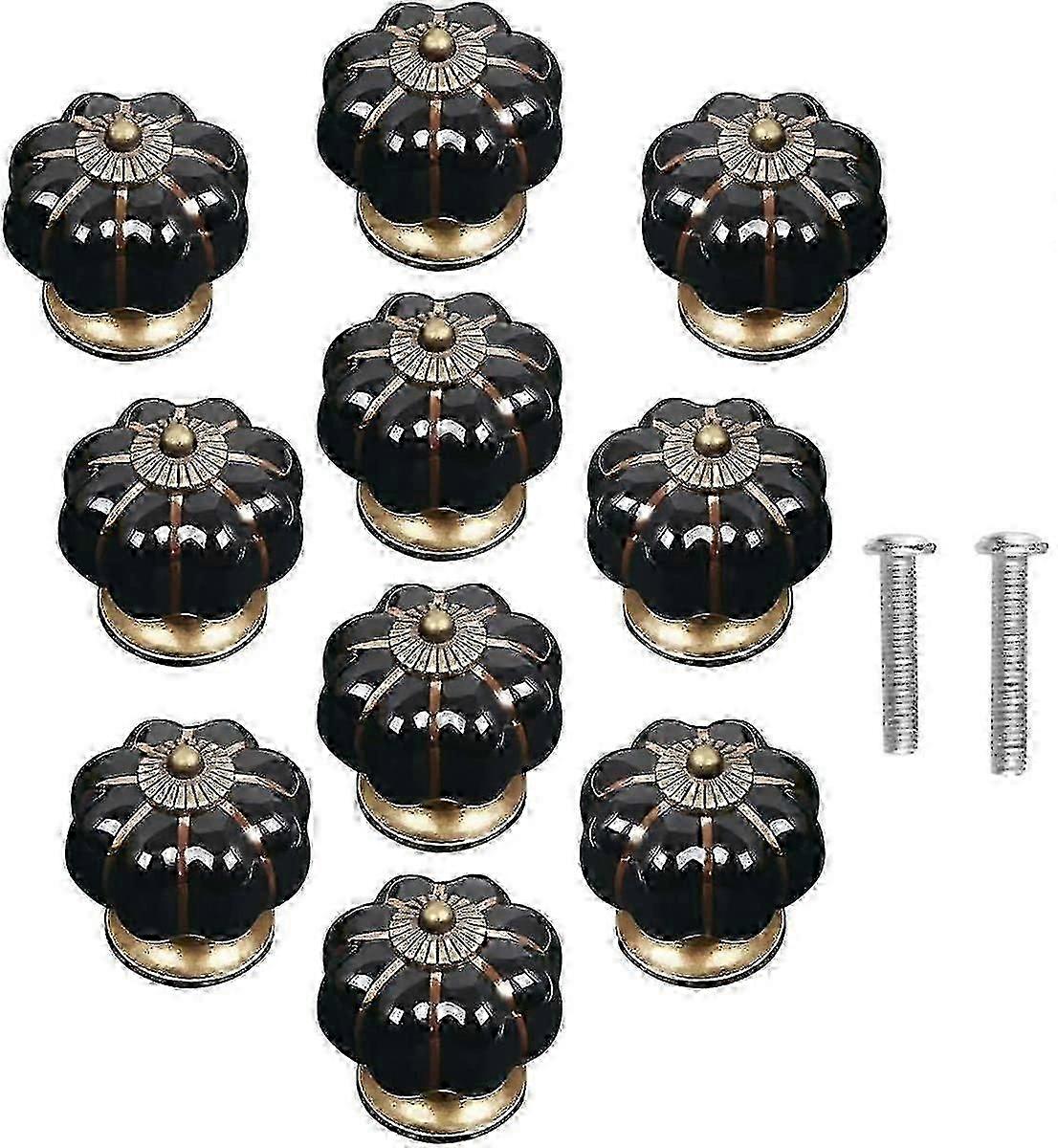 25-26 10 Pack Vintage Ceramic Pumpkin Shaped Door Knobs For Cupboard Drawer Cabinet Home Decor - Black hk
