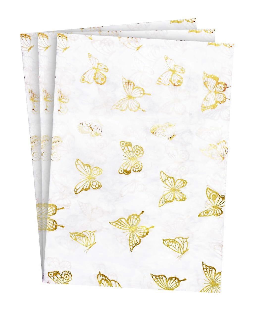 Bzumoot 50 Sheets 20x28in Tissue Paper for Gift Bags, White Metallic Gold with Butterfly Pattern, Compatible with Wrapping, Christmas Wedding