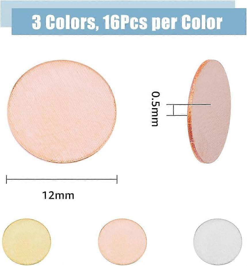 Round Metal Stamping Blanks Copper Discs Round Blank Tag Without Hole Metal Crafting Discs for Jewelry Making 12mm Round Sheet Plate: Each flat round sheet is approximately 12mm in diameter and 0.5mm thick, ideal for creating intricate designs and embellishments. Hole-Free Design: These metal sheets are flat and without holes, providing a smooth surface for crafting intricate jewelry pieces. The set comes with a plastic bead container, keeping your metal sheets neatly organized and easily accessible. 3 Colors: With 3 different colors available, includes 48pcs. You can mix and match or coordinate with your designs, adding depth and dimension to your jewelry pieces. Premium Material: Crafted from high-quality copper, these sheets provide durability and versatility for various crafting applications. Nice Gift: Ideal for laser engraving or embellishing, these flat round pendants offer versatile applications, making them perfect for crafting personalized necklaces, bracelets, keychains, and other accessories tailored to your unique style.