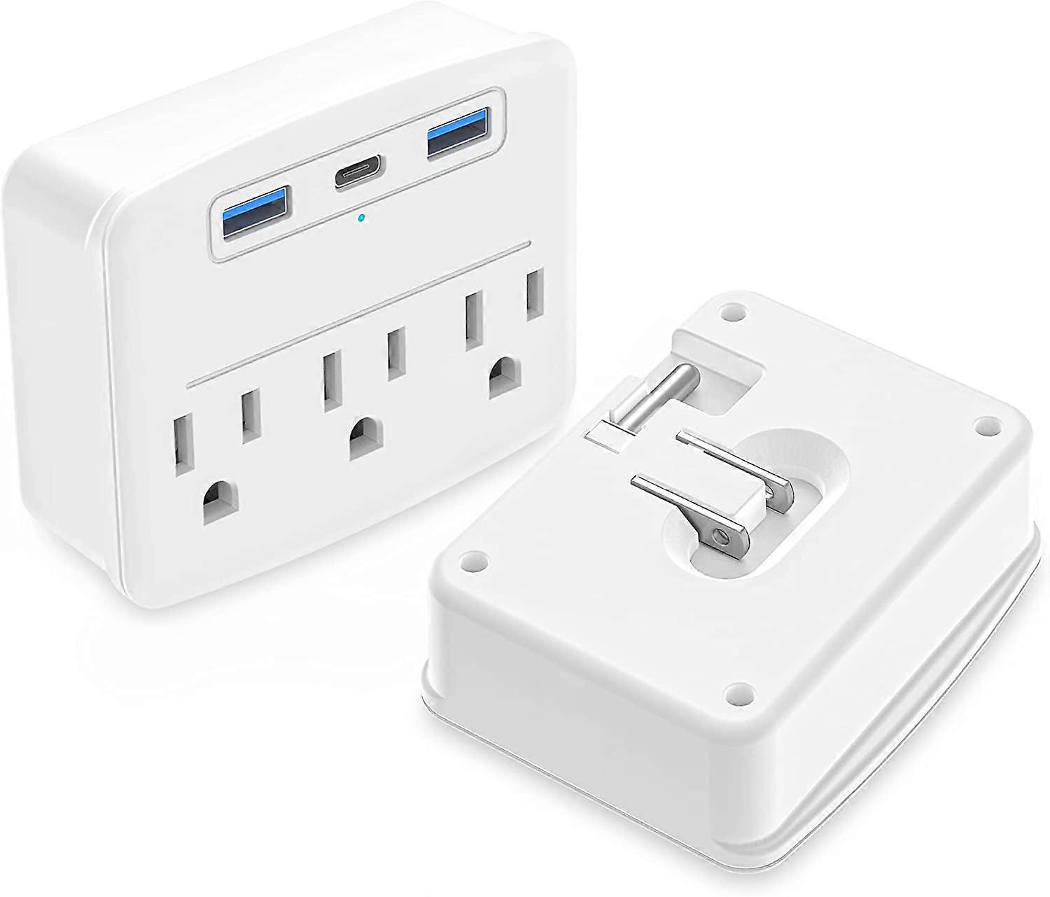 2 PC Cruise Power Strip Foldable Non Surge Protector with USB C Outlets 3.4A Total, Multi Plug Wall Socket, Cruise