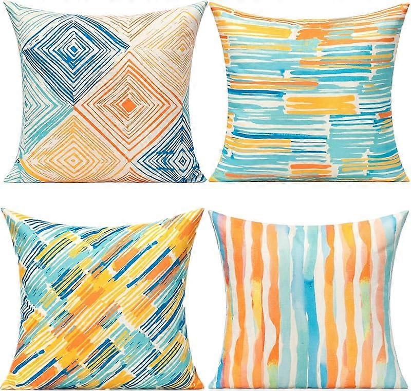 Outdoor Pillow Covers 18x18 Set of 4, Orange Rust Multicolor Abstract Mid-Century Modern Decor, Compatible with Patio Sofa Bench Couch