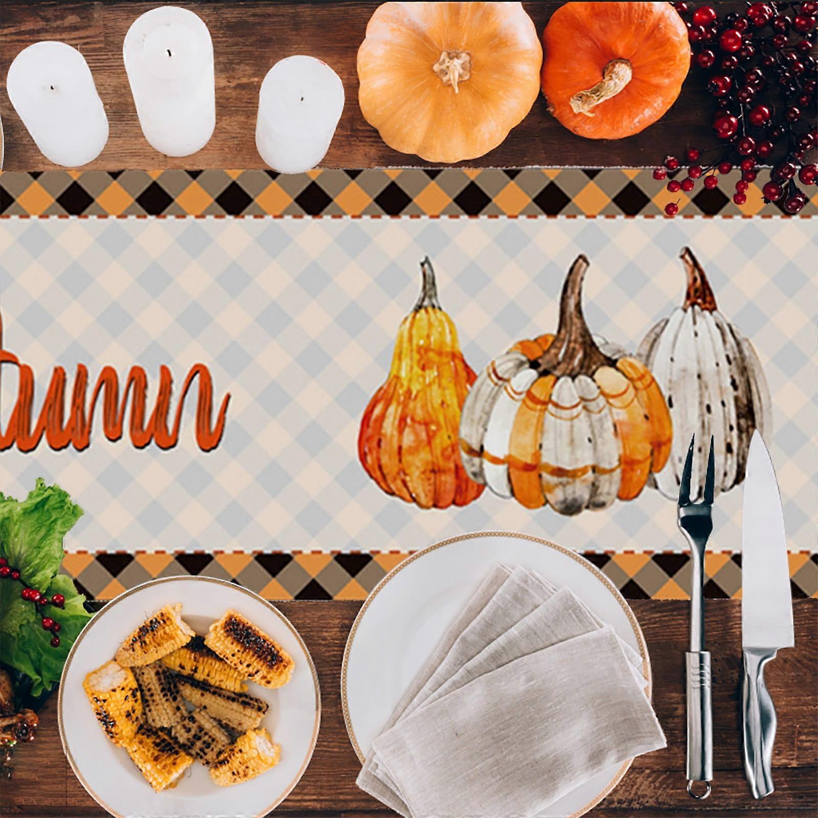 Begine Clearance Thanksgiving Table Runner Tablecloth Decoration Plaid Pumpkin Harvest Picture,1X Wallpaper