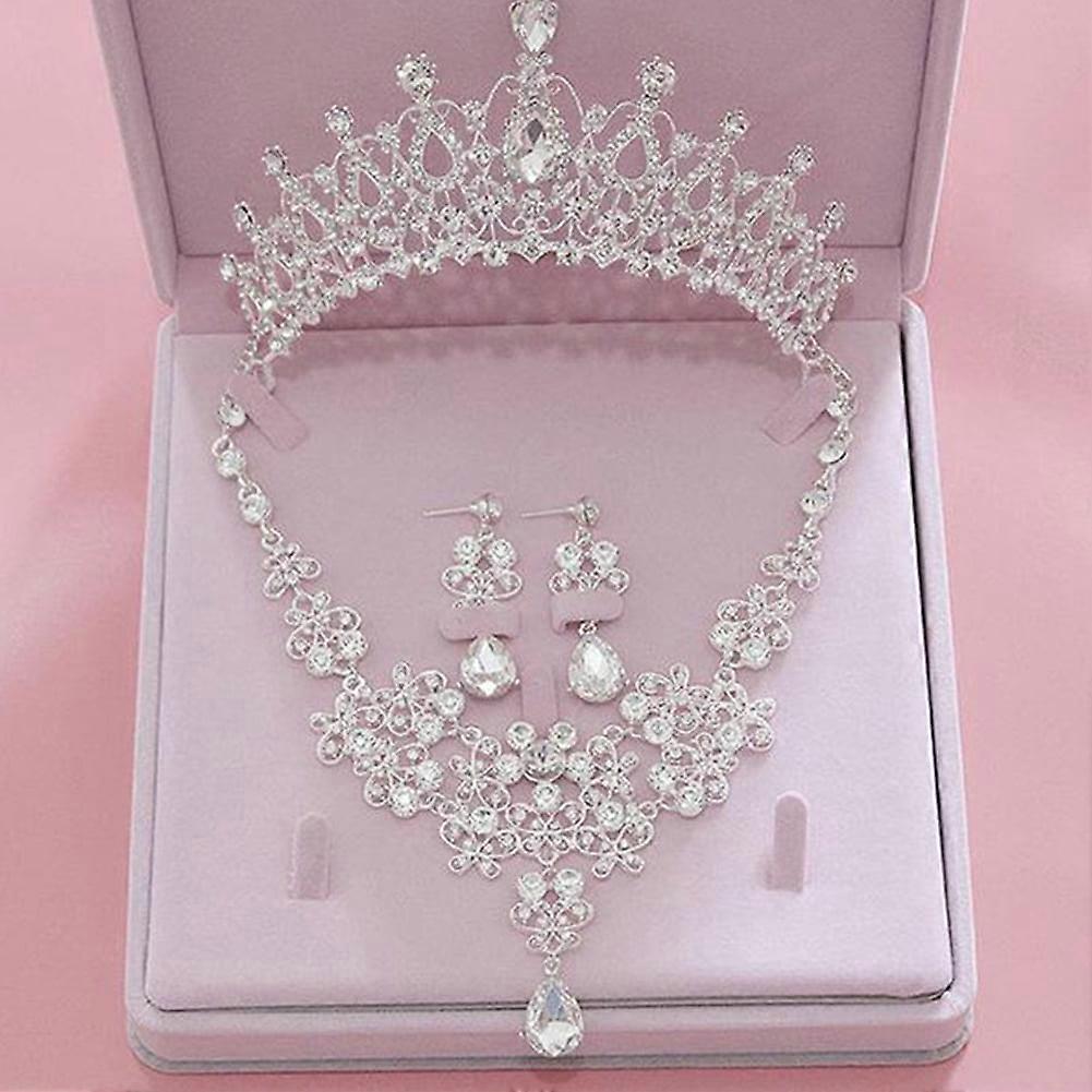 Limei Wedding Sets For Women Bling Bride Hair Accessories Tiaras Earrings Necklace Wedding Jewelry Sets (3Pcs/Set)