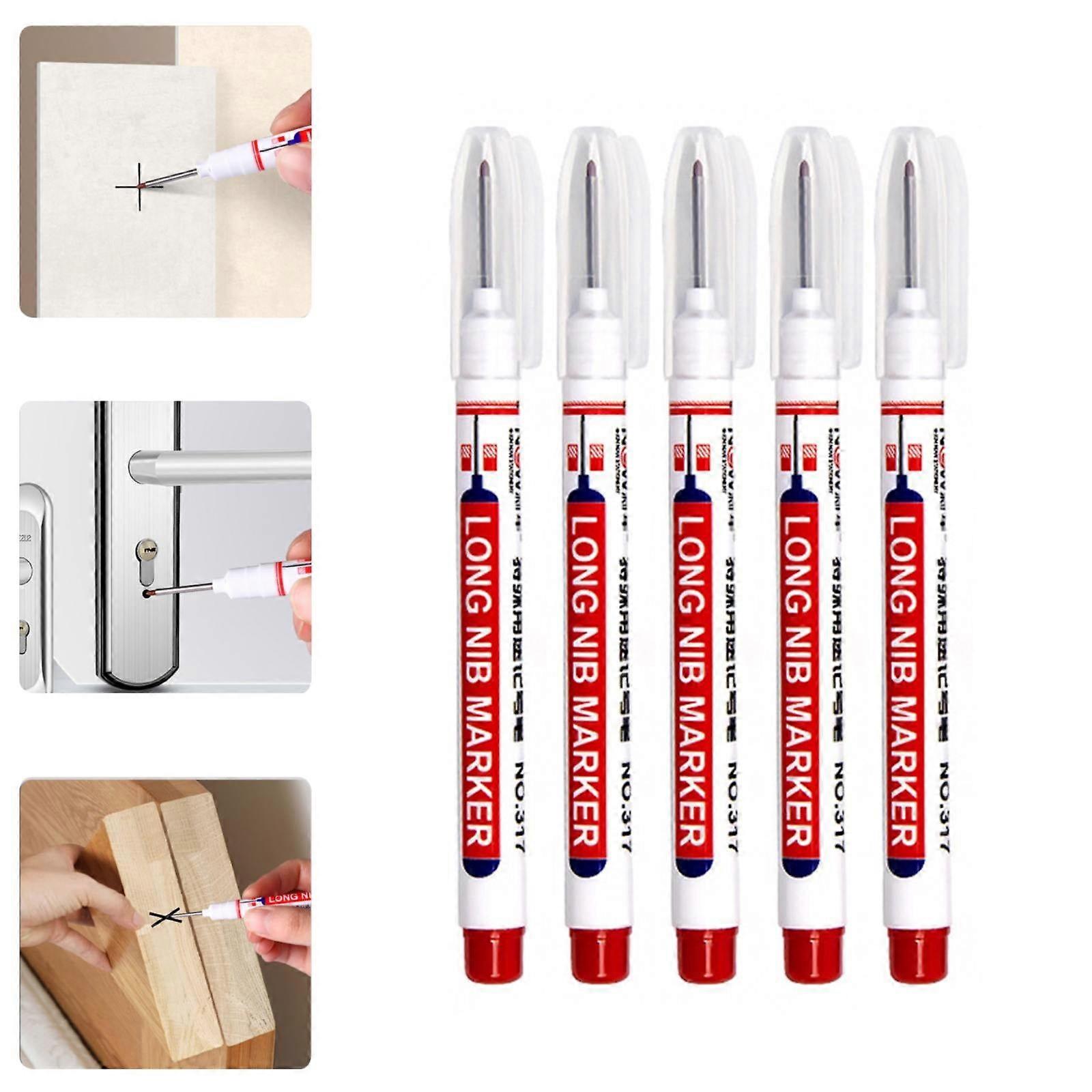 Giyblacko 20mm Long Head Deep Hole Marker Pen Set, 5pc 10ml Metal Marking Tool for Woodworking, compatible with building & metal surfaces