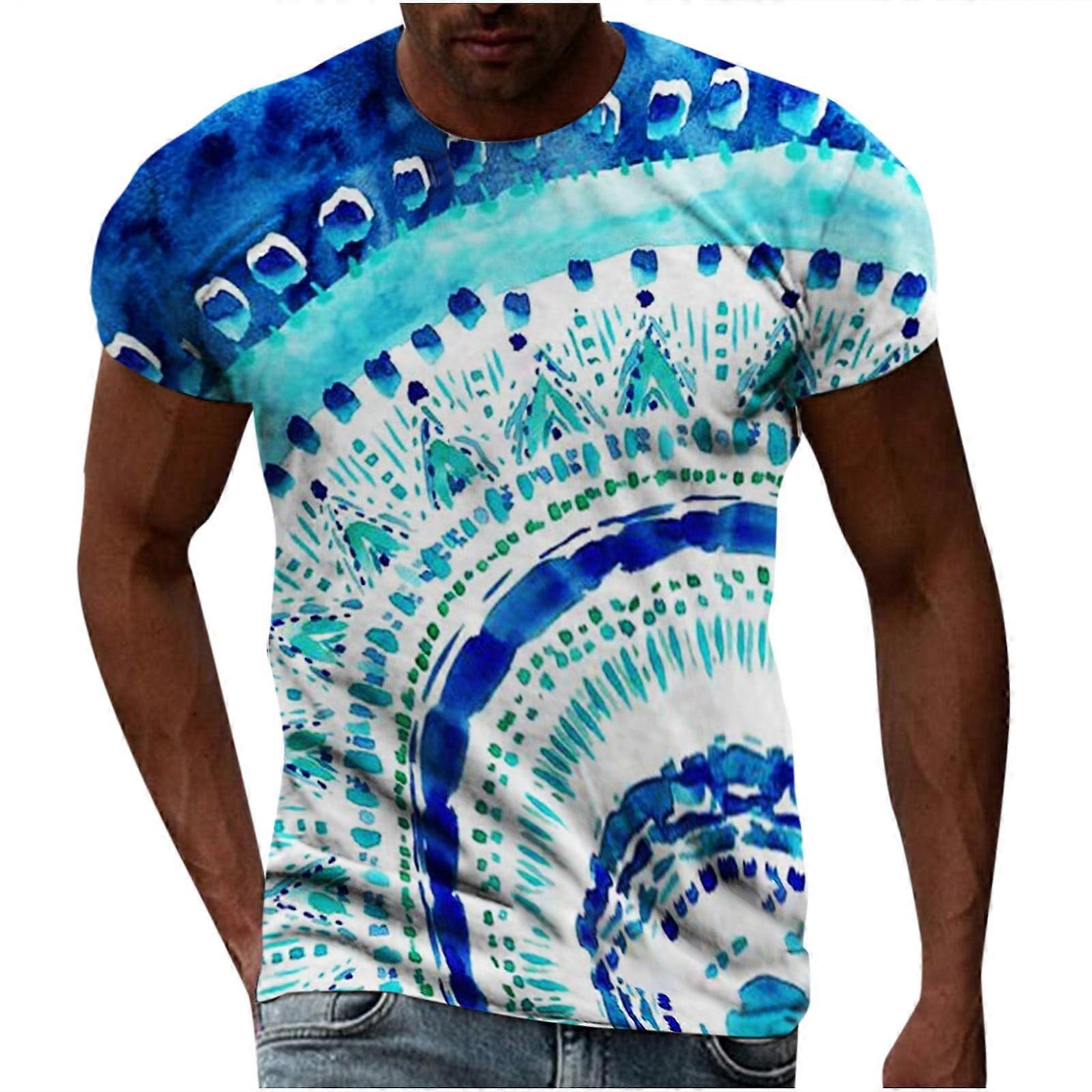 Honeeladyy Savings Men's Casual Short Sleeve Shirts Vintage Indian Tribal Ring Graphic Tees Summer Slim Fit Crew Neck Blouses Streetwear Sky Blue