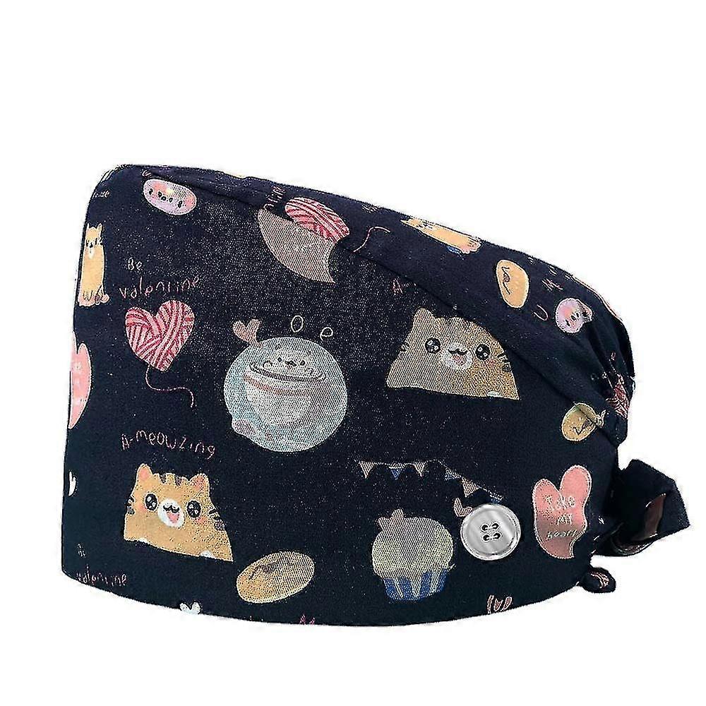 25-26 Cotton Printed Hat Adjustable Gum Cap For Nursing Nurse Doctor Cleaning Work Type F