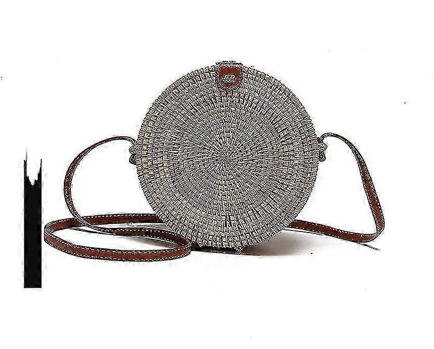 25-26 Handwoven Round Rattan Bag Women Leather Strap Crossbody Straw Handbag--brown PK