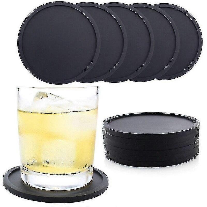 25-26 5pcs Round Silicone Black Drink Coasters Placemats Table Mats Dinner Table Placemat