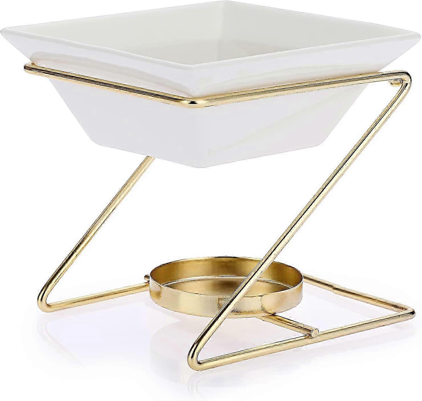25-26 Brûleur de fusion de cire de cire d’huile essentielle en métal décoratif avec bol en céramique, tenue de bougie parfumée à la maison